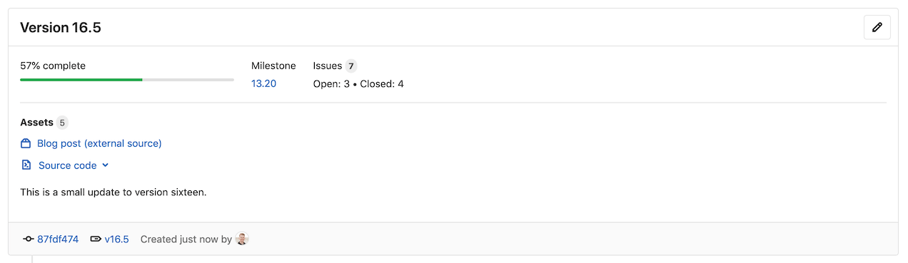 - 修正したいリリースの右上隅で、[Edit this release](鉛筆アイコン)を選択します。