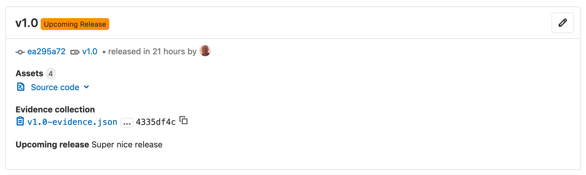 Releases APIまたは UI を使って過去のリリースを作成することができます。過去のreleased_at 日付を設定すると、リリースタグの横に過去のリリースバッジが表示されます。過去にリリースされたため、リリースのエビデンスは利用できません。